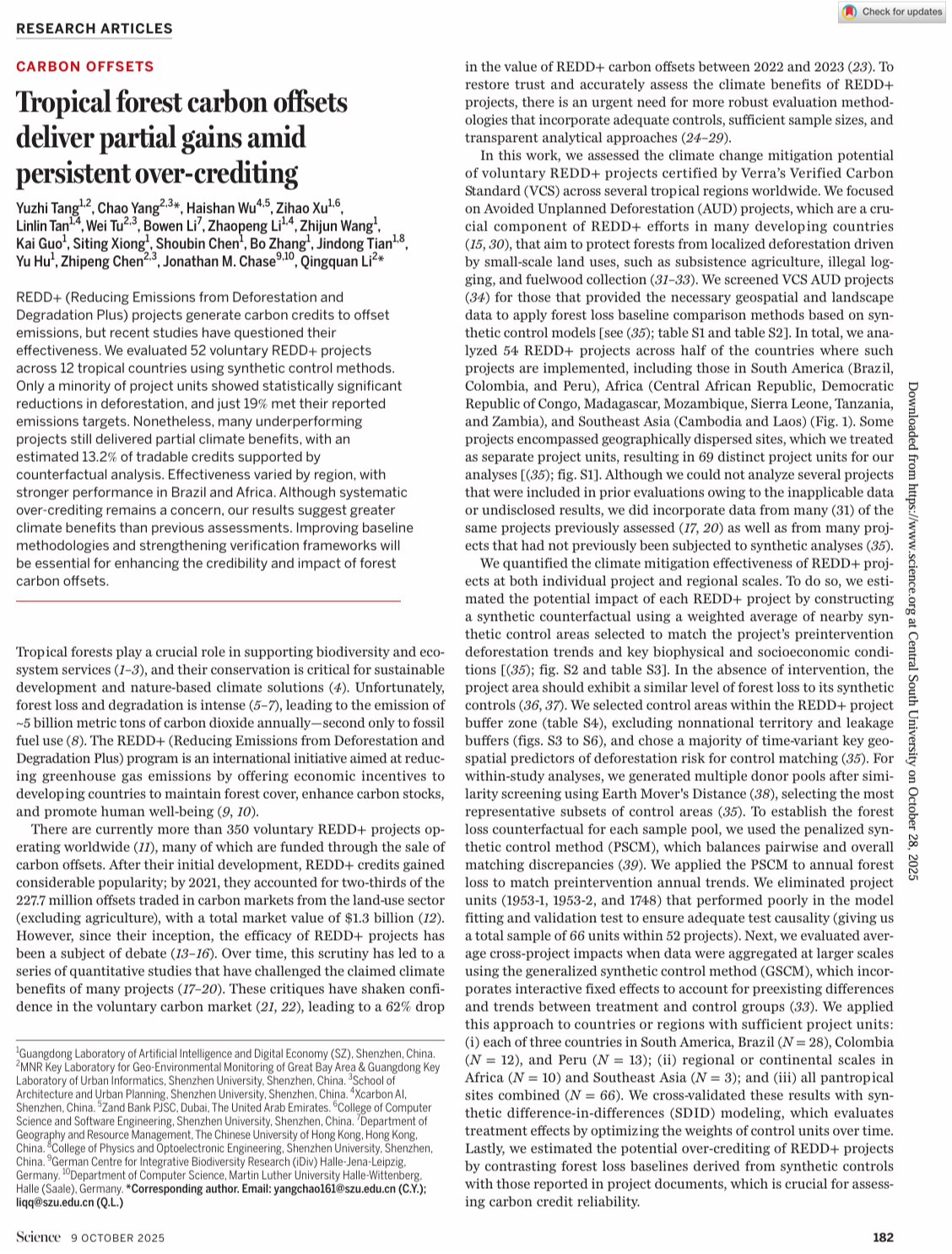 - 1 Science发文!深大李清泉院士团队提出森林碳抵消评估新方... 2025-10-11