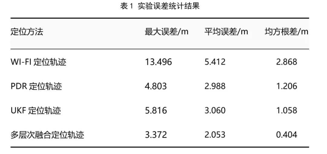 在利用UKF算法解决Wi-Fi定位不稳定和PDR误差累积的误差问题的过程中,针对UKF算法在不同源定位数据融合过程的权重设置问题,本文提出了多层次融合的方法,基于底层融合过程对多元定位结果作置信度评价的基础上改进UKF算法,并加入调整因子及时对定位结果做纠正。实验结果表明,本文定位算法的总体平均定位误差为2.053m,普通UKF算法定位平均误差为3.06m,在建立置信度模型后定位误差减少1.007m,可见定位信号置信度评价对于多源信号融合定位方法具有显著作用。
